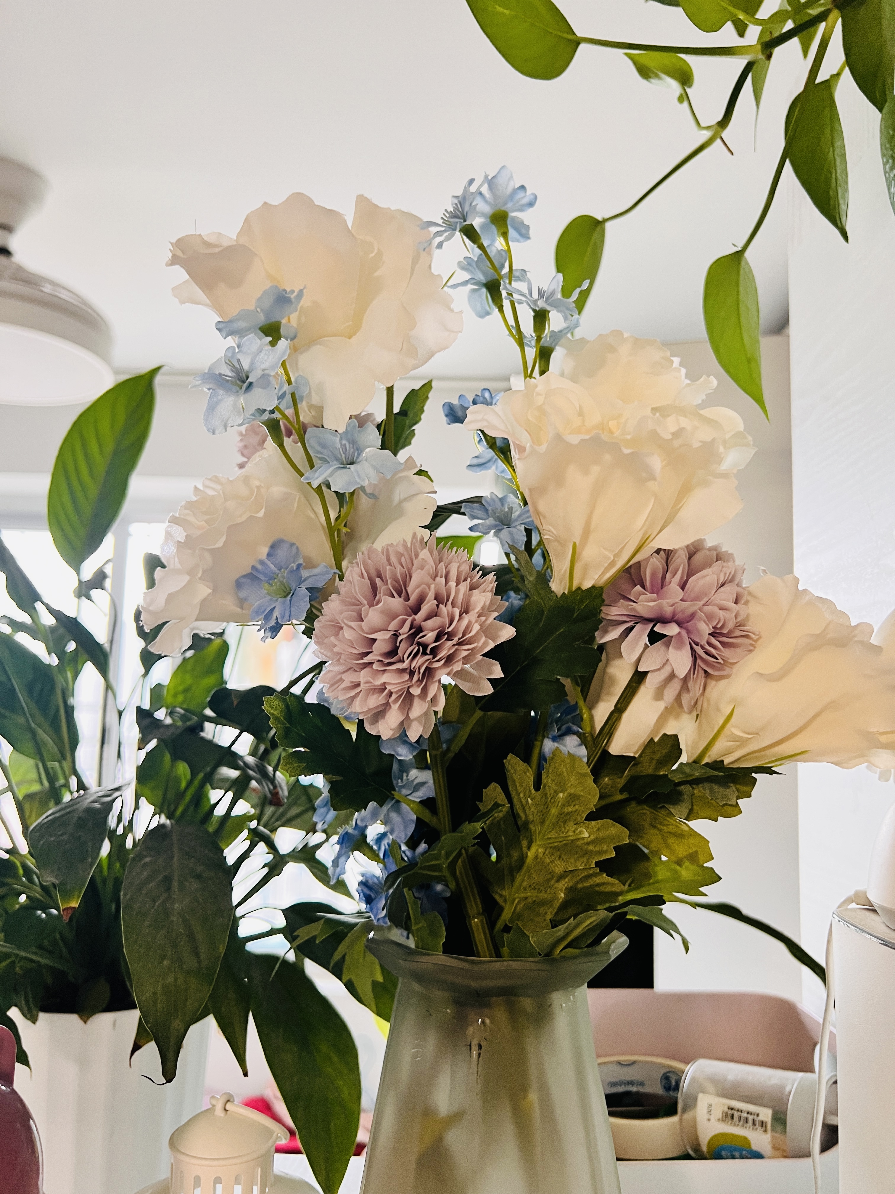 臭小子早上不到六点就醒了,于是早早带他出门,先去大沙河公园玩一玩。半小时的车程到达大沙河公园,大沙河公园南门停车场距离宜家不到200米,轻车熟路从公园南门进停车场找到快充充电车位,公园遛娃的同时还可以顺便充下电,美滋滋。一下车带上玩沙子的桶子铲子车子,直奔沙场。一玩就是两个多小时,不亦乐乎。到十点多换掉玩沙子弄脏的衣服,准备开始去逛宜家。 宜家很多人,很多和我们一样带着娃来边遛娃边吹空调,顺道创造点消费需求的。在各种家具中穿梭、钻来钻去,在电动沙发按上按下,在儿童房区域捉迷藏…安安解锁了一个新词——吓我一大跳。第一次说是在中途我带他上洗手间,里面广播间歇播放“不要吸烟,吸烟会触发烟雾报警”,安安听到广播发出比较大的声音,回头给我来一句说“吓我一大跳”。后面在玩捉迷藏的时候,我用鳄鱼和恐龙玩偶去逗他玩,他有些怕这种玩偶,但知道我是在跟他玩,每回我吓他,他开开心心地说“吓我一大跳”。 到下午快三点钟,臭小子终于撑不住要充电了,找了块毯子铺在购物车里,让他睡在上面了。给安安买了一个画板,一面黑一面白的。另外挑了些仿真花,宜家的仿真花效果是真好,但贵也是真贵,简单挑了几枝,就近200块了。