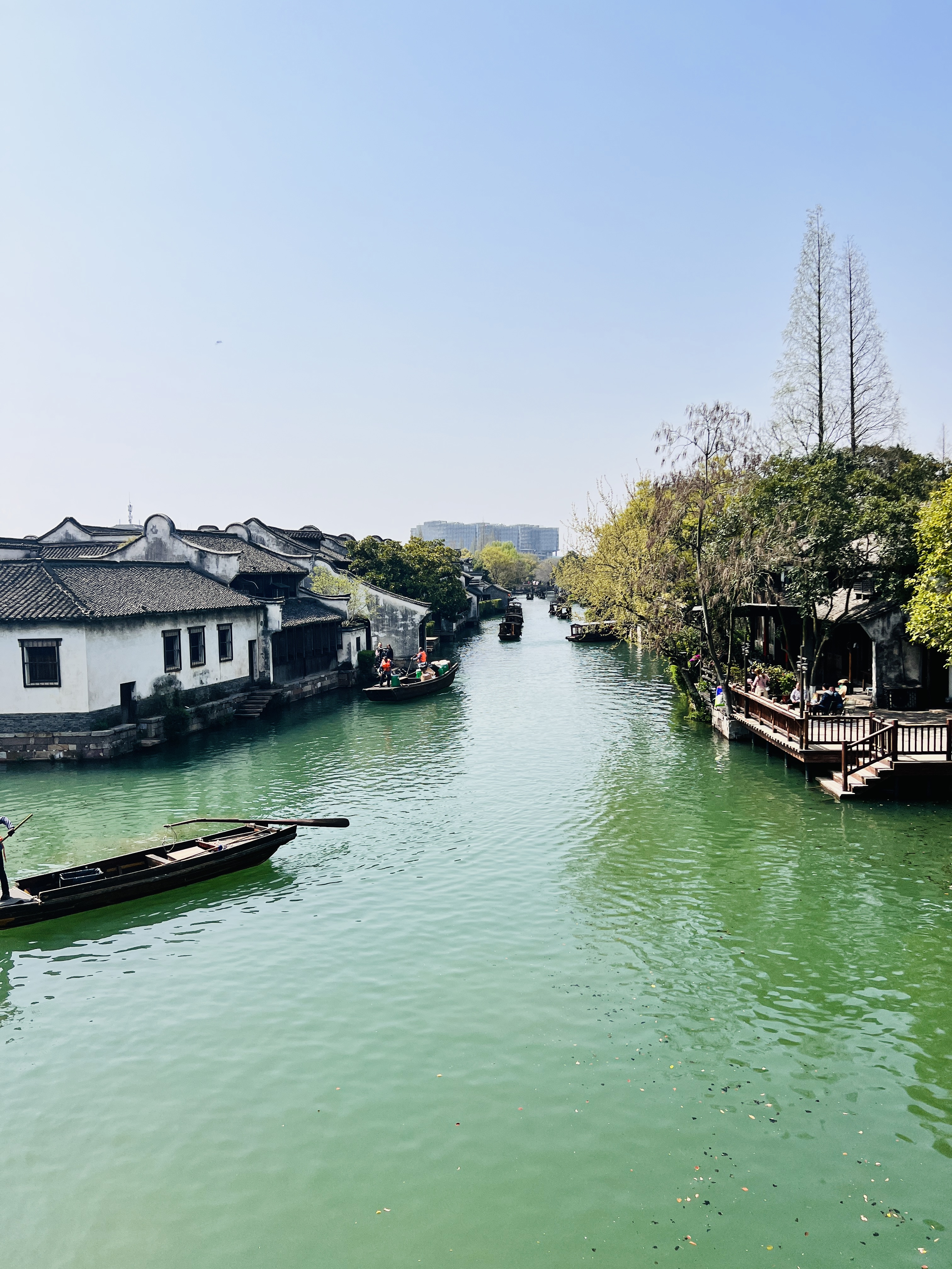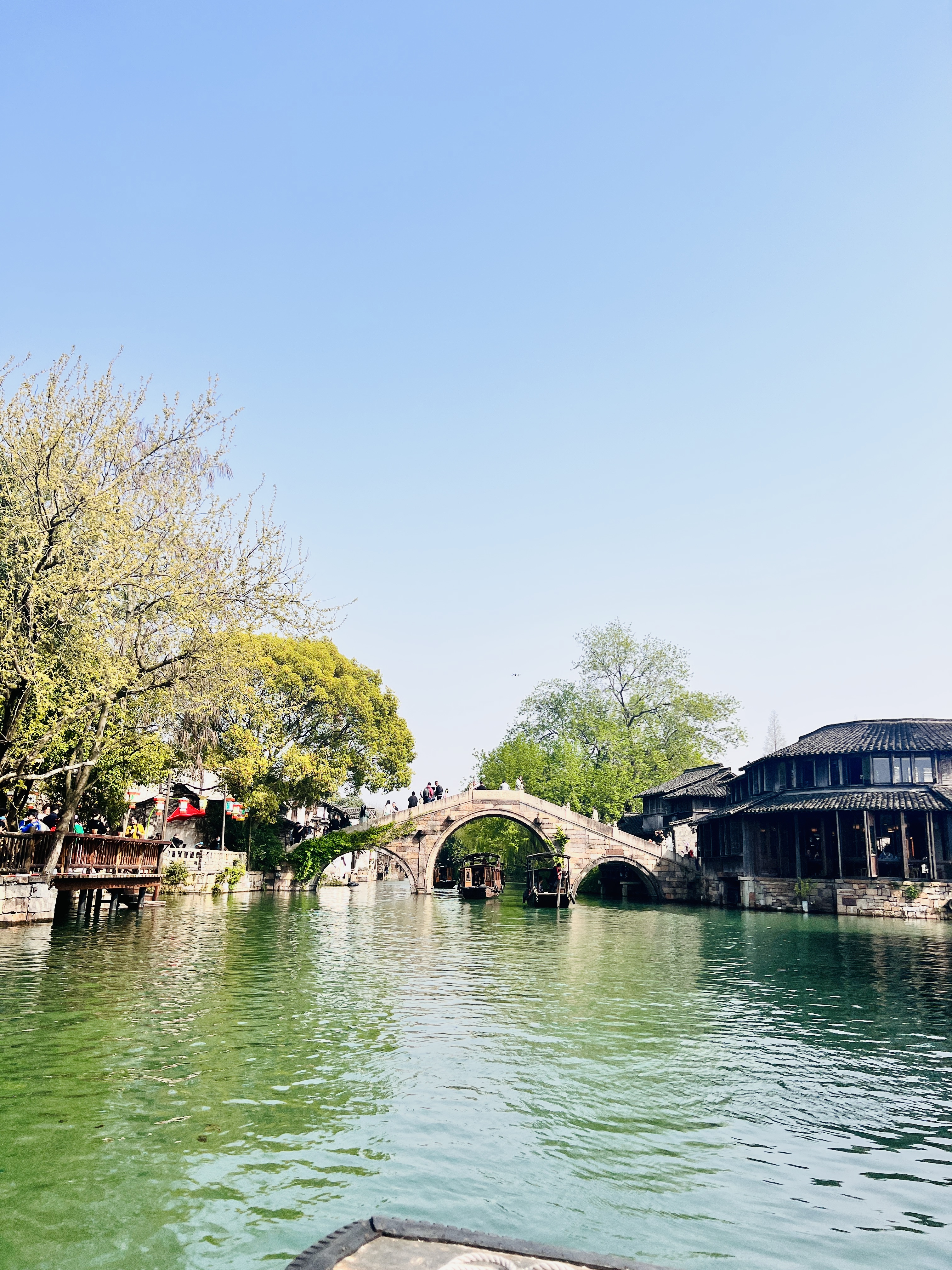 我是第二批出发的,由于去程航班延误了四个多小时,我们凌晨四点半才到达杭州萧山机场,到酒店已经是 05:30,大家已经没精神去爬山了。而且当天杭州下雨,导致 18 人小分队爬天目山的安排临时取消,改为沿着南宋御街、清河坊附近逛吃逛吃。南宋御街是南宋临安城的中心街道,全长约 4185 米,是皇帝在“四孟”(孟春、孟夏、孟秋、孟冬)到景灵宫朝拜祖宗时的专用道路。我们在御街逛了四个多小时,然后乘大巴车前往乌镇。当晚在乌镇吃饭、唱 K、夜宵,直到半夜 1 点半才回到酒店休息。第二天早上 9 点,我们集合步行前往乌镇风景区——东栅、西栅游玩。东栅有原住民居住,生活气息更浓,有原汁原味的水乡味道,而西栅是景区统一收编开发运营,整体性更好,自然环境和建筑融合得更为和谐,商业气息比较浓。东栅是茅盾先生的出生地、木心先生故居所在地,而西栅则是世界互联网大会的举办地。置身于江南水乡,可以感受到古老而深厚的文化底蕴。这里有运河泛舟和古色古香的老街,还有历经沧桑的古桥和古镇的风貌。在这里漫步,仿佛穿越时空,从紧张的城市生活短暂抽身到了慢节奏的乡村。