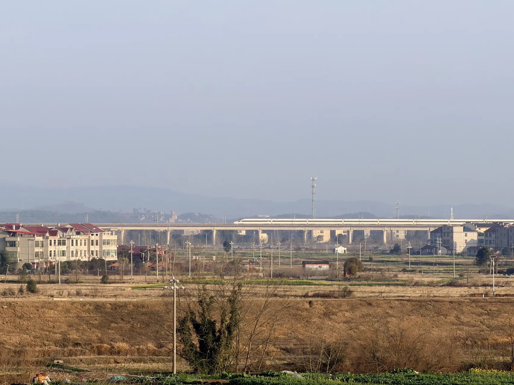 沪昆高铁经过我们那里,我指着经过的高铁骗安安说,“这是我们乡下的地铁”。
